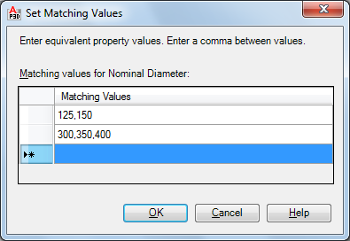 Identifies compatible property values. You can add values separated by a comma on each line (for example: 125, 150) to indicate a match.