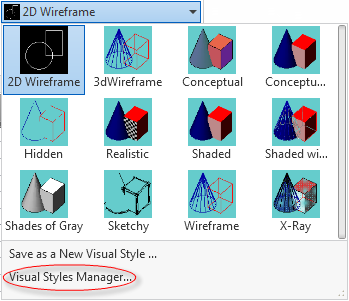 2. In the Visual Styles Manager palette, click Available Visual Styles in Drawing 2D Wireframe.