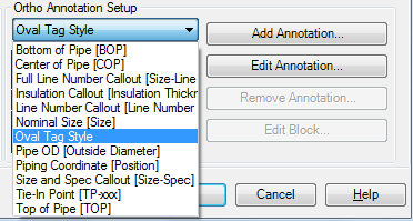 - Under Ortho Annotation Setup, select an annotation from the drop-down list, for example, Bottom of Pipe (BOP). Click Add Annotation. It is always best to modify a copy rather than the original.