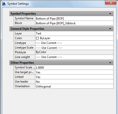 - In the Symbol Settings dialog, you can make changes to color, layer, and so on. Click OK.