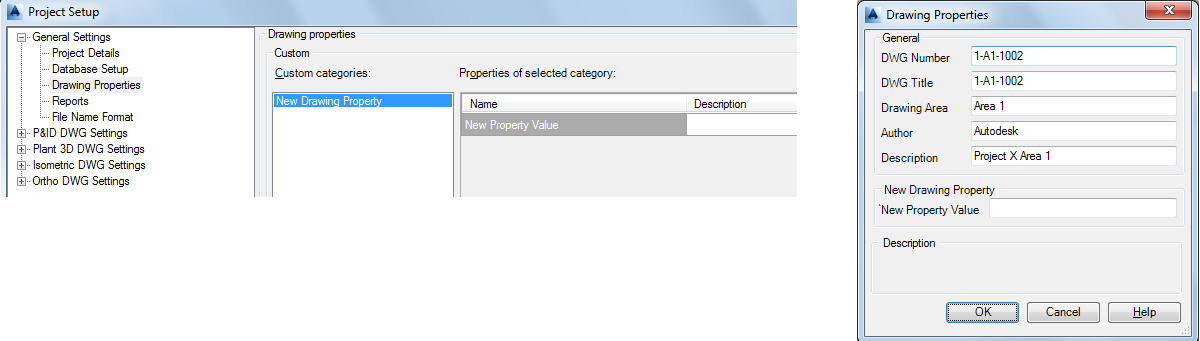 You can set properties, which include the drawing title, the drawing number, the author, the project area, and a short description of the drawing.