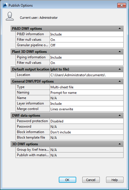 Specifies whether P&ID related data gets included with the published DWF file output.