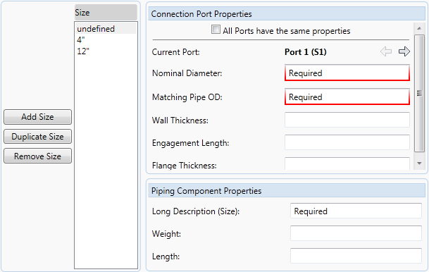3. In Connection Port Properties, in the Nominal Diameter box, enter a nominal diameter (for example: 1).