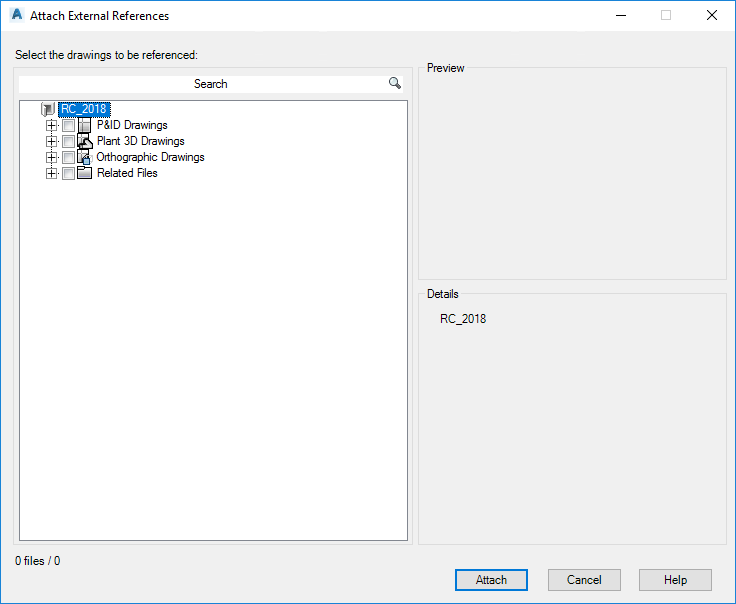 You can use this method to attach AutoCAD DWG files that do not contain plant objects from anywhere in the vault.