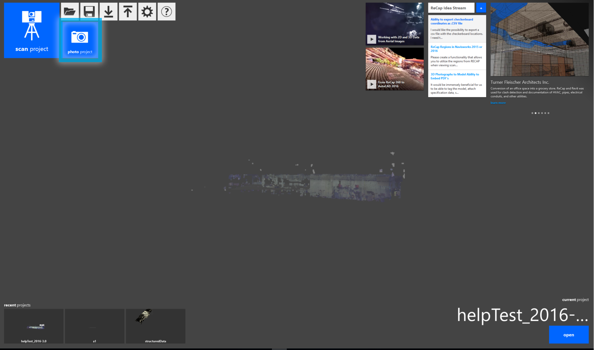 To begin, click "photo project" from within the ReCap desktop application:
