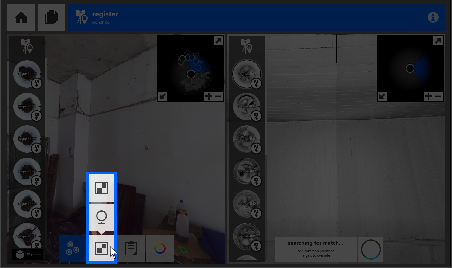 ReCap supports targetless scans, meaning that the application does not require targets at any point before, during, or after the registration process; however, you can identify targets used during the scanning process during manual registration.