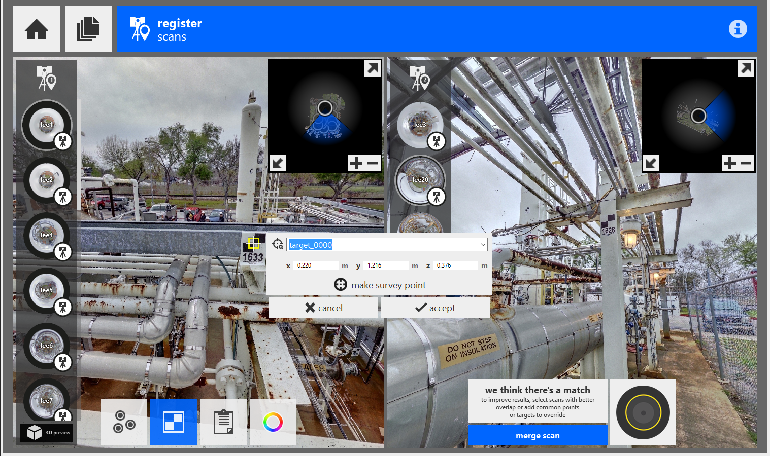 Targets can be named as you go. ReCap will automatically look for and center the target on-click for precise measurement.
