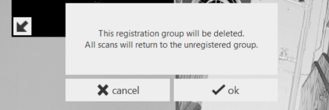 If you wish to ignore or delete/permanently exclude a single, problematic scan, or a scan at the top of the vertical group during Manual Registration, you will notice the absence of an "X" to delete the scan. You can disband the group, sending the scans into the Unregistered group, where you can then delete the scan(s). You can also start a new group from the scans within the Unregistered group.