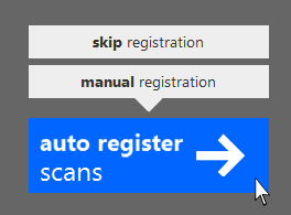 If your scans have been previously registered, you can either attempt re-register through Auto-Registration, retain data and refine through Manual Registration, or skip registration altogether and go straight to indexing. This can be done from the Import screen, where the popup will appear as you hover over the Register Scans button with a subsequent warning prompt, or, if you chose to manually register and want to back out, go through the scan settings icon at the top right of the screen and hover over the Register Scans button on the next screen. The popup in either instance is the same, and you will click "skip registration".