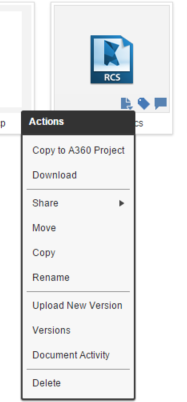 Downloading your file from either the ReCap or the A360 Drive web interface is simple. Simply click the 3-dot menu (ReCap) or the Actions menu (A360 Drive) and click your intended task.