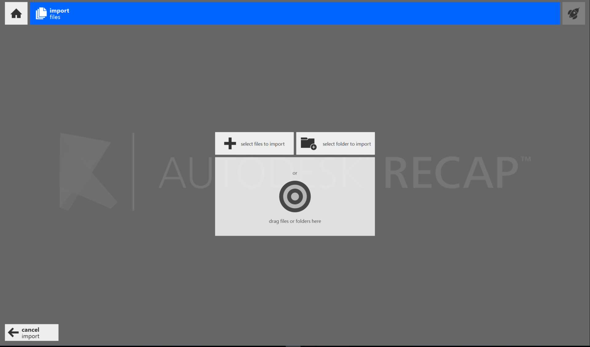You can import additional files at any time with the Add File and Add Folder buttons on the left side of the screen: