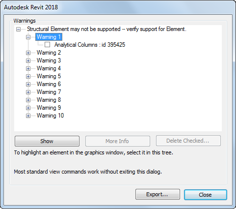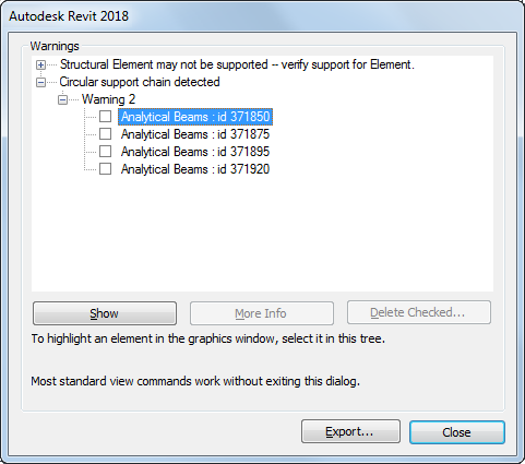 - When prompted that the elective checking criteria in the Structural Settings dialog is being used to evaluate the model, click OK.