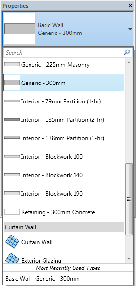 The Type Selector identifies the currently selected family type and provides a drop-down from which you can select a different type.