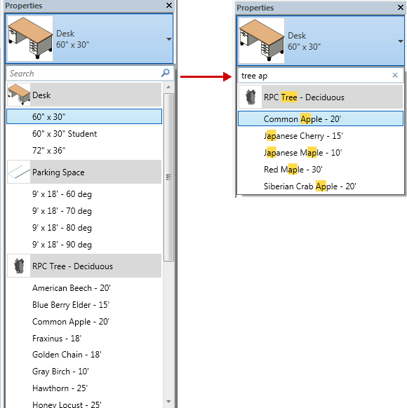 Revit LT to make it easier to select from a long list of options. You can search in the following functional areas:
