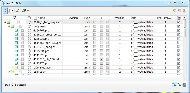 : The default behaviour; updates all items used in the current Pro/ENGINEER session. Also searches the active workspace for new files. Found files will be added to the add-in database. For each item, Refresh connects to Vault and updates the information.