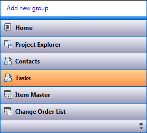 In the following example, there are two types of custom objects that have been defined: Contacts and Tasks. The image shows the user selecting Tasks.