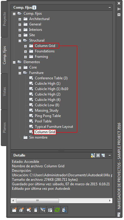 Es posible que cree un componente fijo y posteriormente caiga en la cuenta de que se trata de un elemento repetitivo. Por ejemplo, ha creado una rejilla de pilares y decide utilizarla en otra planta. Puede convertir el componente fijo en elemento y luego hacer referencia a él en varios componentes fijos.