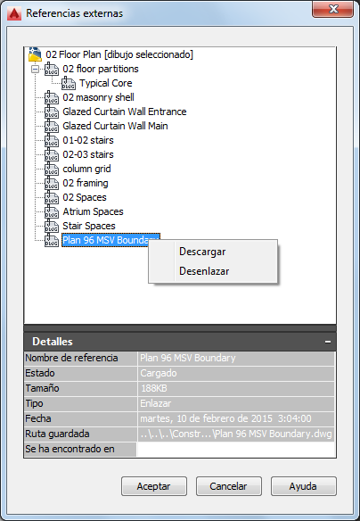 En el menú contextual puede descargar, volver a cargar o desenlazar la referencia externa enlazada.