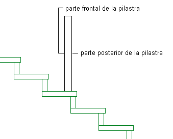 Especifique la orientación de la pilastra respecto a la dirección hacia arriba o abajo de un recorrido de escalera en una vista de alzado, tal como se muestra en la ilustración siguiente: