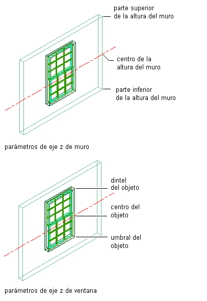 la parte inferior de las ventanas | Seleccione Antepecho del objeto (Parte inferior del objeto) en Hasta. |