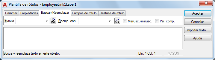 Busca cadenas de texto especificadas en la plantilla de rótulo y las reemplaza con texto nuevo.