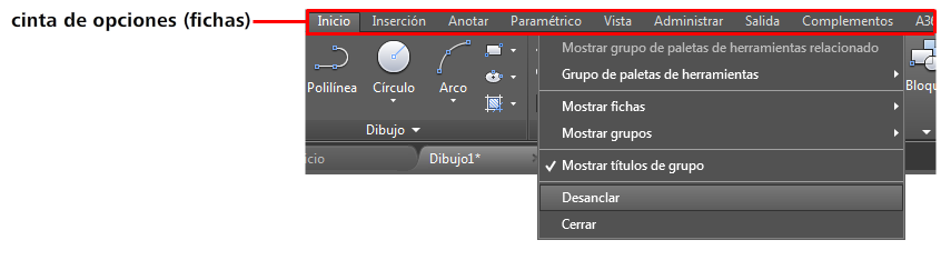 - Si no está anclada, desancle la cinta de opciones