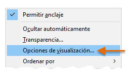 Haga clic con el botón derecho en un área no utilizada dentro de la paleta HYT. Seleccione Opciones de visualización en el menú.