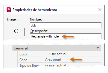 Escriba una descripción como, por ejemplo, Rectángulo con X para aaa y Rectángulo con agujero para bbb. Las descripciones actúan como información de herramientas.