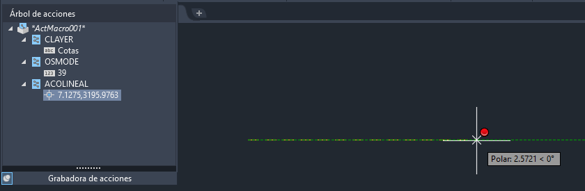 Con el grupo Grabadora de acciones expandido y el Árbol de acciones visible, seleccione el valor de cadena grabado Cotas en la variable de sistema CLAYER y haga doble clic en él; a continuación, escriba el nuevo valor Acota.