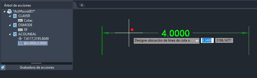 En los pasos siguientes, se describe cómo reproducir la macro de acciones ADDLINEARDIM que se grabó anteriormente: