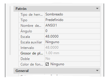 El nuevo objeto de sombreado incluye todos los parámetros de propiedades del sombreado original.