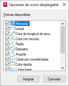 • Opciones de icono desplegable: controla los comandos que se muestran cuando se abre el menú del icono desplegable.
