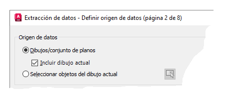 - Utilice las opciones Dibujos/conjunto de planos e Incluir dibujo actual y haga clic en Siguiente para continuar.