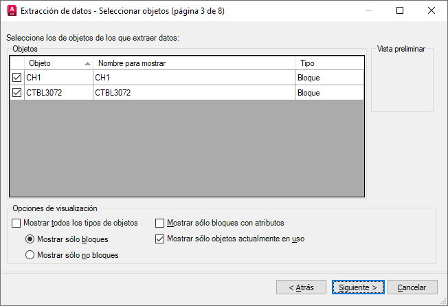 - Desactive la casilla de verificación Mostrar todos los tipos de objeto y elija Mostrar sólo bloques, y haga clic en Siguiente para continuar.