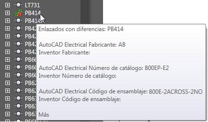 Busque y seleccione la otra representación en el árbol. En este ejemplo, dado que he comenzado con el componente de AutoCAD Electrical, selecciono el pulsador de Inventor.