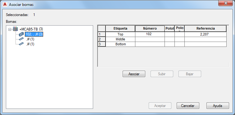 Para desplazar una borna de un nivel a otro, seleccione la fila y haga clic en Subir o en Bajar.