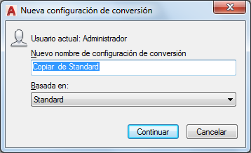 Cuadro de diálogo Nueva configuración de conversión