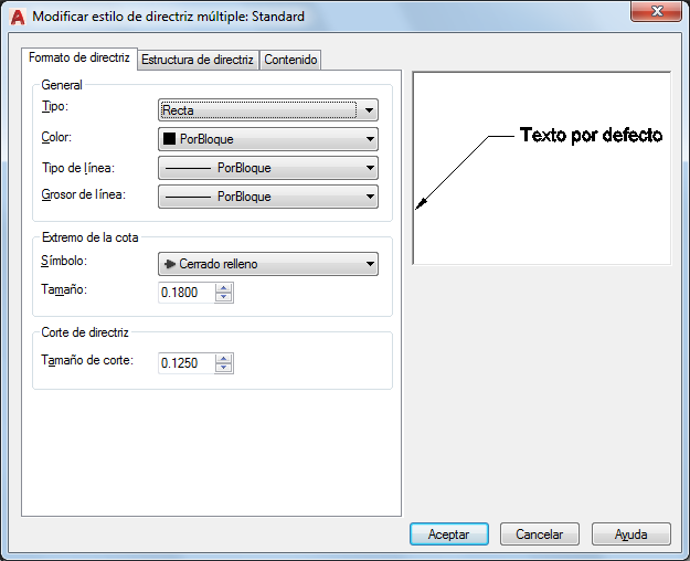 Cuadro de diálogo Modificar estilo de directrizM