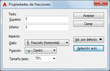 Cuadro de diálogo Propiedades de fracciones