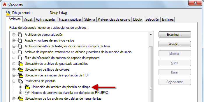 Los archivos de plantilla de dibujo (DWT) se utilizan para crear nuevos dibujos. Los dibujos creados con un archivo DWT contienen todos los estilos y los objetos de dibujo definidos en el archivo DWT. Los archivos DWT personalizados se migran de una versión anterior a una subcarpeta con el nombre de la versión en que se han migrado; la convención de nomenclatura de la subcarpeta es Plantillas de Nombre del producto. La subcarpeta Plantillas de Nombre del producto se crea en la carpeta definida por la opción Ubicación del archivo de plantilla de dibujo.