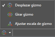 Muestra gizmos 3D, que ayudan a desplazar o girar un conjunto de objetos a lo largo de un eje 3D o un plano, o a ajustar su escala. |