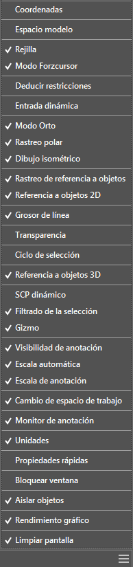 La barra de estado proporciona acceso rápido a las herramientas que afectan al entorno de dibujo.