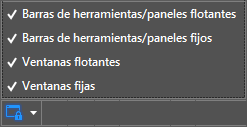 Buscar | Bloquear ventana | Bloquea la posición y el tamaño de barras de herramientas y ventanas anclables como DesignCenter y la ventana Propiedades. |
