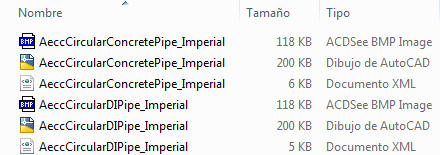 Figura 1: archivos de catálogo para dos tipos de tubería circular
