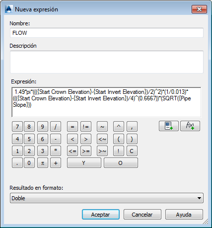 Se pueden crear expresiones personalizadas para determinar el caudal en tuberías circulares completas.