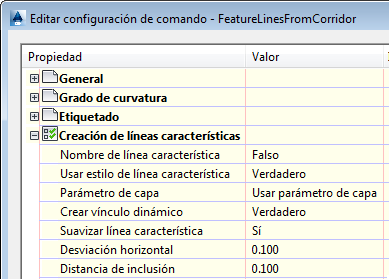 Figura 4: parámetro de comando para suavizar líneas características de obra lineal para la explanación