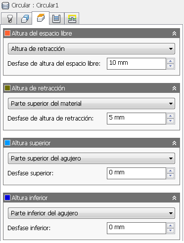 - Altura de retracción: desfase incremental de la Altura de retracción.