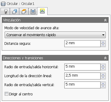 Radio del arco vertical que suaviza el movimiento de entrada a medida que avanza hasta la propia ruta de herramienta.