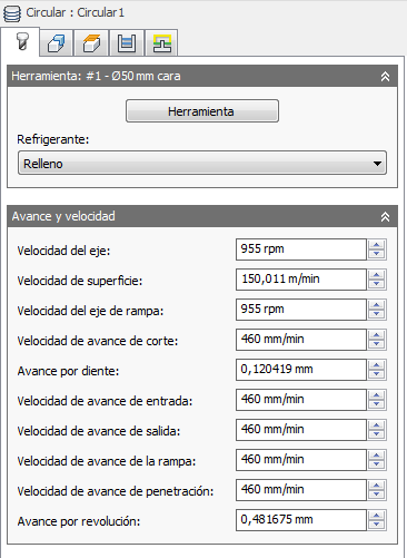 Si se cambia el material radial a dejar, el material axial a dejar se define automáticamente en la misma cantidad, a menos que se introduzca manualmente el valor de material axial a dejar.
