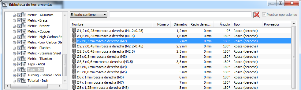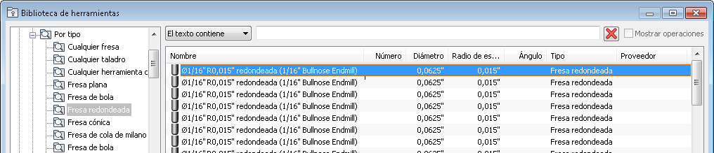 Por ejemplo: al seleccionar la carpeta Por tipo > Fresa redondeada, solo se muestran las herramientas redondeadas.